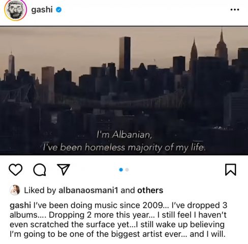 “Unë linda në Shqiperi. E di se çfarë do të thotë? Jam emigrant. Jam shqiptar dhe pjesën më të madhe të jetës kam qenë i pastrehë. Fakti që ti më njeh tani tregon se nëse unë vijoj rrugën time, ti nuk e di se deri ku unë mund të arrij. Muzika më shpëtoi jetën”, thuhet në video.