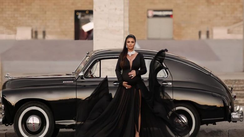 Këtë e ka bërë të ditur përmes një imazhi në Instagram ku shihet e veshur në një fustan të gjatë elegant me ngjyrë të zezë.