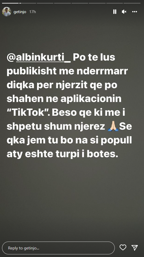 “Albin Kurti po të lus publikisht me ndërmarrë diçka për njerëzit që po shahen në aplikacionin TikTok”.