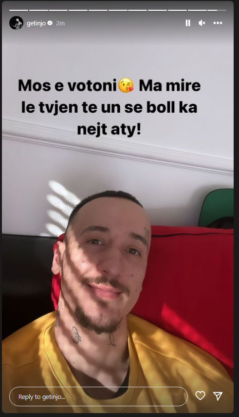 “Mos e votoni. Ma mire le tvjen te un se boll ka nejt aty!”, shkroi reperi