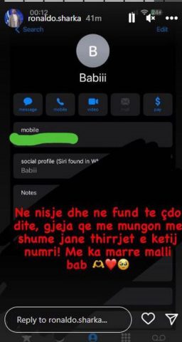 “Në nisje dhe në fund të çdo dite, gjëja që më mungon më shumë janë thirrjet e këtij numri. Më ka marrë malli bab”, shkruan ai.
