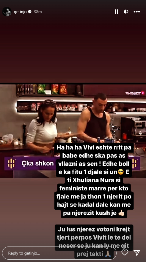Për këtë pati një reagim nga reperi Getinjo, i cili krijoi një lidhje dashurie brenda me ish-konkurrenten e “Love Story”.