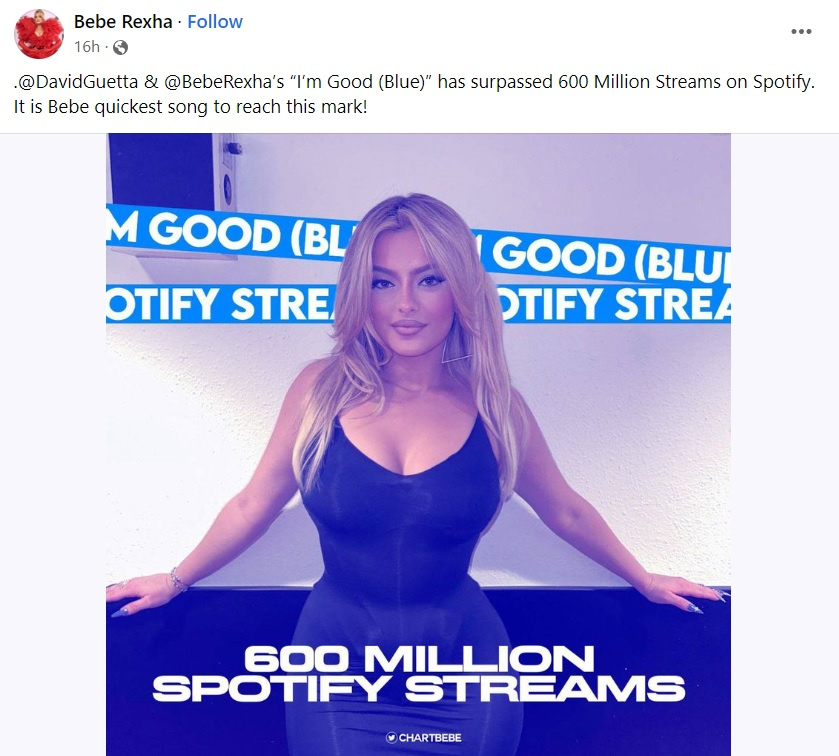 Ka qenë njëra prej faqeve të fansave të këngëtares shqiptare, e cila ka publikuar këtë të dhënë duke e cilësuar si këngën më të shpejtë të Bebe Rexhës në karrierën e saj, që arrin një shifër të tillë.