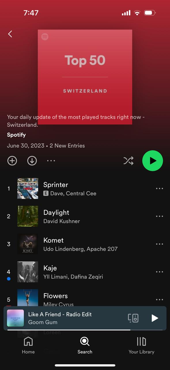 Tani së fundmi, në TOP 50 këngët më të dëgjuara në Spotify në Zvicër në vendin e katërt u rendit “Kaje” nga Dafina Zeqiri dhe Ylli.
