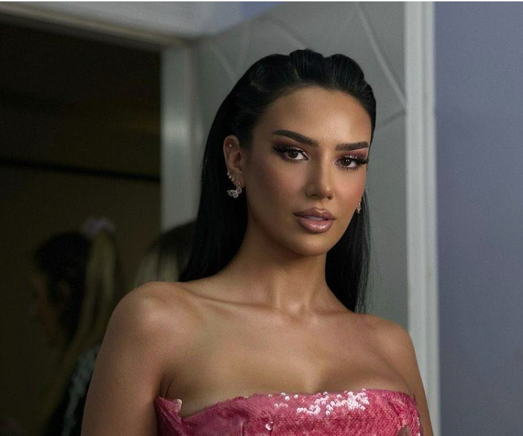 Ajo kishte veshur një fustan ngjyrë rozë, një palë vath me flutur, që i shtonin bukurinë edhe më shumë.