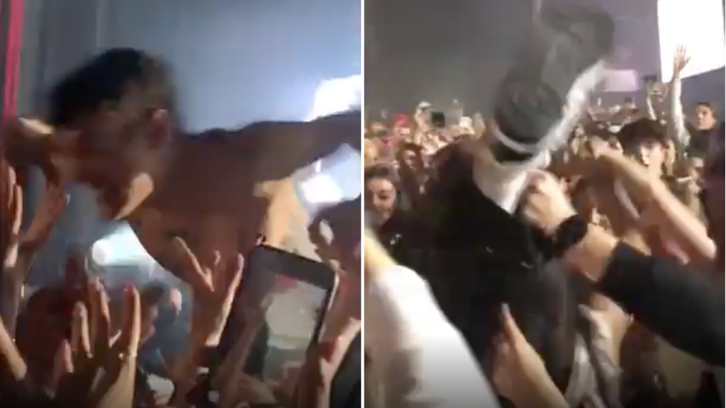 Në videon e publikuar nga fansat e këngëtarit që ishte duke e ndjekur koncertin drejtpërdrejtë kanë filmuar momentin kur ai është rrëzuar në tokë.