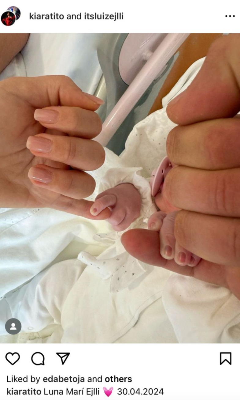 Kiara Tito dhe Luiz Ejlli janë bërë prindër për herë të parë. Në jetë ka ardhur vogëlushja e tyre, e cila quhet Luna Mari Ejlli.