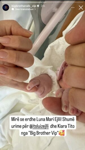 “Mirë se erdhe Luna Mari Ejlli! Shumë urime për Luizin dhe Kiarën nga ‘Big Brother Vip’.”