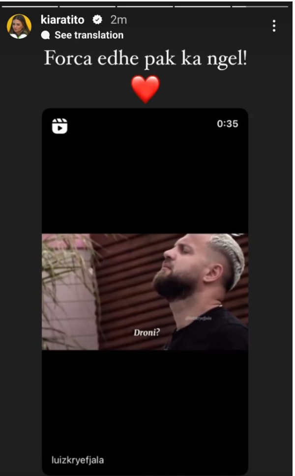 Së fundmi ajo ka postuar në Instastory një video të tij, duke qëndruar vetëm jashtë në shi dhe ka shkruar një shprehje motivuese dhe përkrahëse ndaj të dashurit të saj.