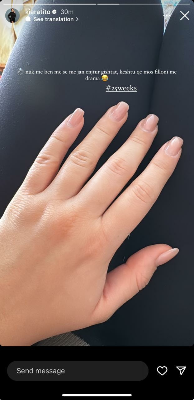 Moderatorja gjithashtu ka vënë hashtagun #25weeks, ku na tregon se është 25-javëshe.
