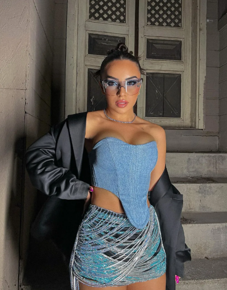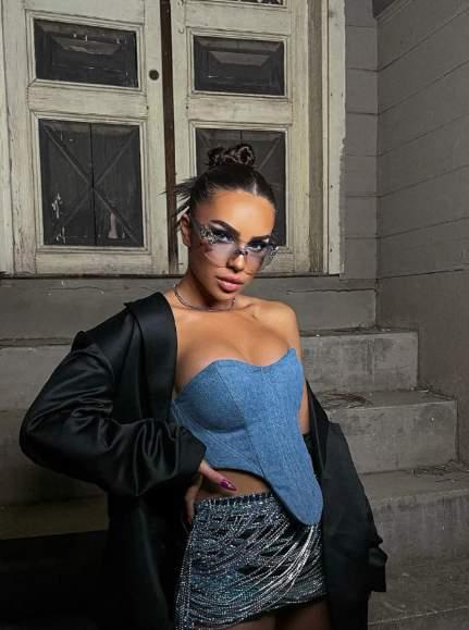 Kida u shfaq në formë të mrekullueshme e veshur me kroset me ngjyrë të kaltër dhe mini-fund me zinxhir lëshuar sipër teksa kompletoi pamjen me syze dielli dhe një xhaketë të zezë.
