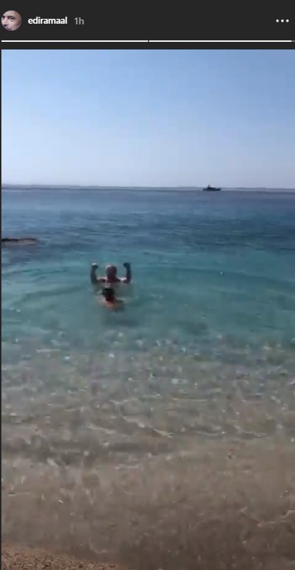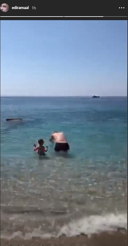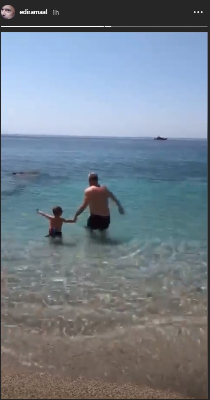 Ai pushimet e tij i ka ndarë përmes disa fotografive në rrjete sociale, ku shihet teksa mëson djalin e tij, Zahon, për të notuar./Arbresh.info/