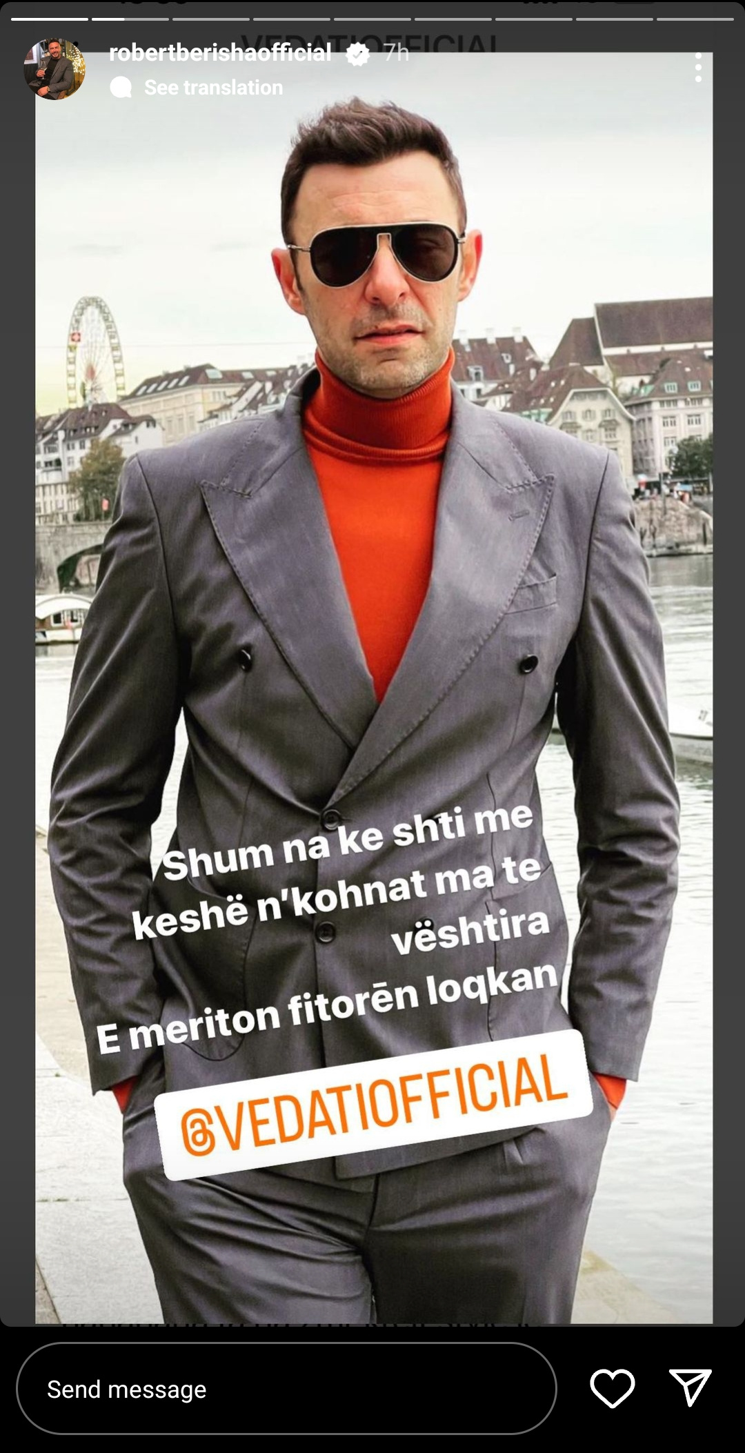 Së fundmi në anën e Vedatit, është pozicionuar këngëtari dhe moderatori, Robert Berisha.