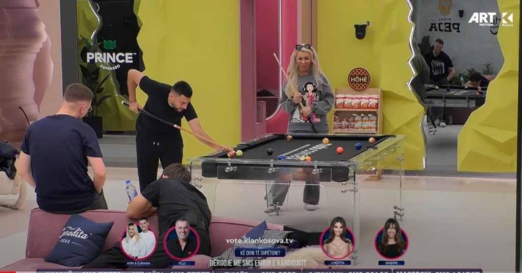 Kësaj radhe Edona dhe Mirdoni ishin ata që luanin në bilardo bashkë.