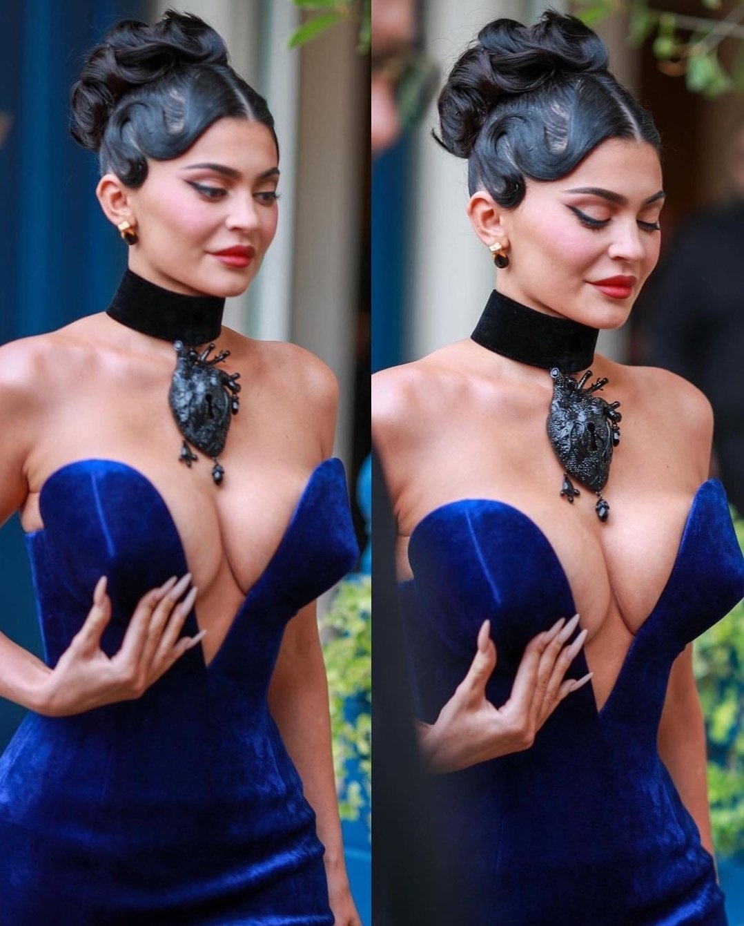 Kylie dukej mahnitëse në fustanin pa rripa, të cilin e kombinoi me një choker të gjerë të zi të varur me një varëse të zezë të madhe në formë zemre njeriu; një version ari i varëses u shfaq në shfaqjen e pistës së Schiaparelli 2022-2023 Vjeshtë/Dimër, shkruan arbresh.info
