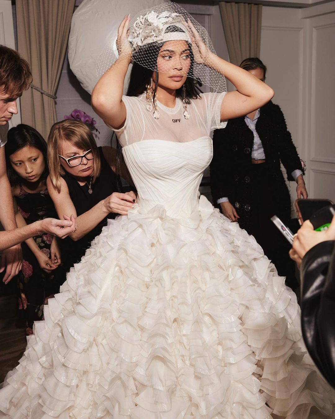 Kështu, Jenner i bëri homazhe Virgil Abloh me pamjen e saj të dasmës, pasi që ky fustan është bërë me porosi nga Abloh para se stilisti të ndërronte jetë.
