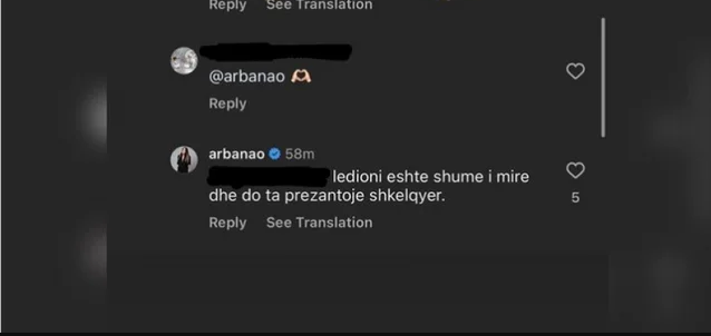 Megjithatë, Arbana sot ka bërë edhe ragimin e saj të parë lidhur me lajmet që qarkullojnë prej ditësh me emrin e saj dhe të Ledionit, për të cilin shpreh bindjen se do ta moderojë shkëlqyer spektaklin.
