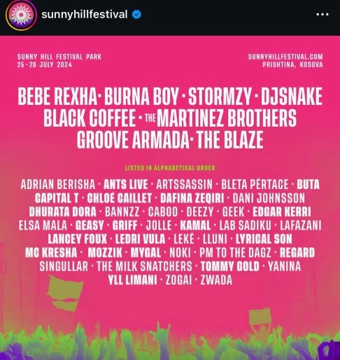 Faqja zyrtare e Sunny Hill Festival ka publikuar listën e plotë të artistëve që do të performojnë.
