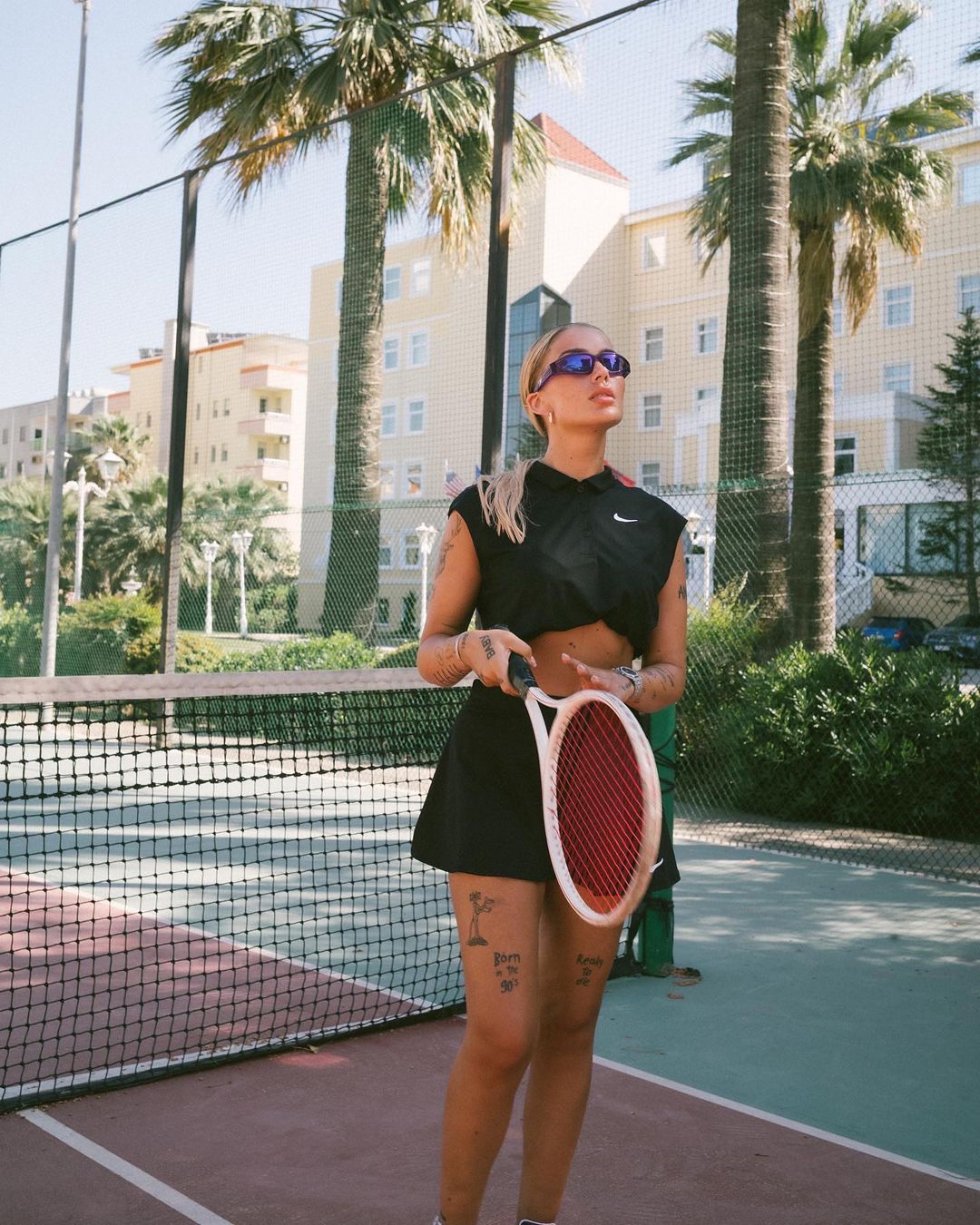 Fituesja e çmimit për debutimin më të ri në MTV EMA, Loredana duket së është në qytetin e Durrësit për xhirimin e ndonjë klipi pasi që është parë edhe në një fushë tenisi. /arbresh.info/
