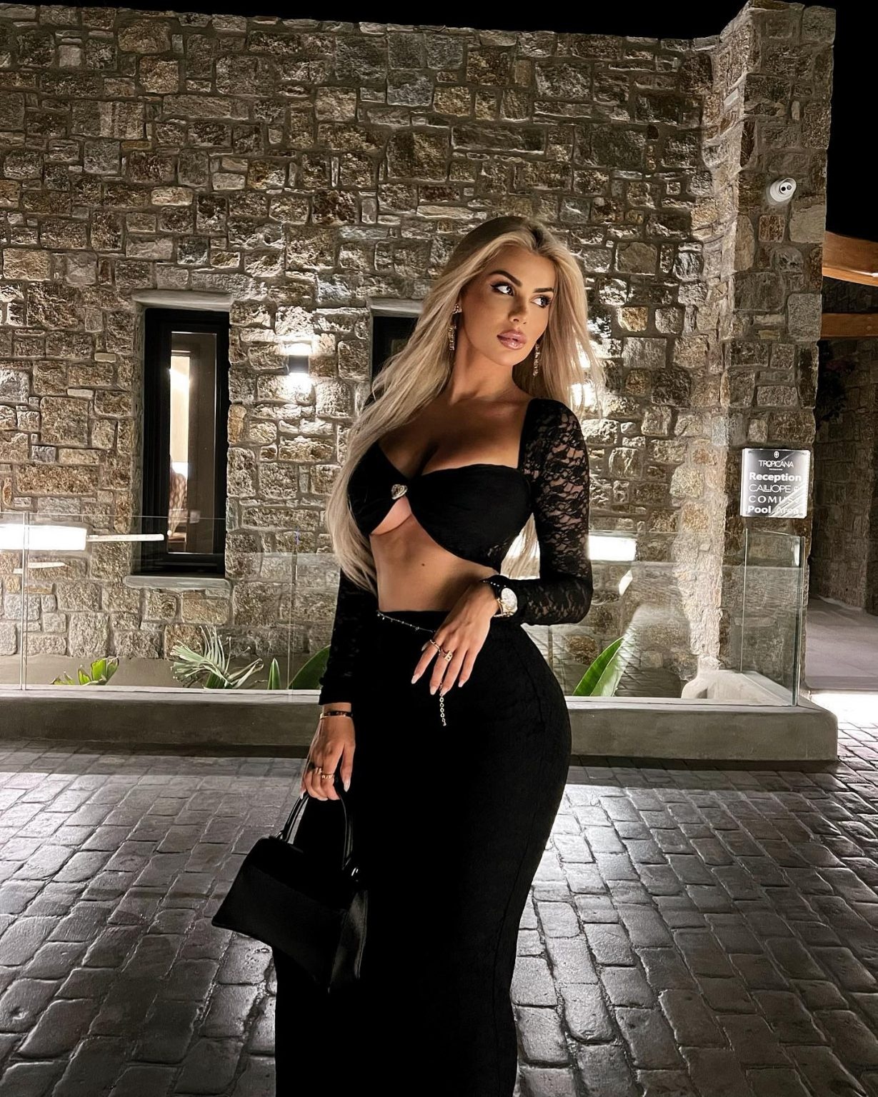 30-vjeçarja edhe së fundmi ka postuar disa imazhe që i realizoi në Mykonos teksa shihet me një veshje dypjesëshe me ngjyrë të zezë, ajo pa me një makijazh të theksuar, ndërsa flokët e gjata i la lëshuar mbi supe.