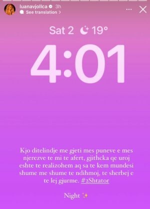 ‘Kjo ditëlindje më gjeti mes punëve e mes njerëzve të mi të afërt, gjithçka që uroj është të realizohem aq shumë sa të kem mundësi shumë të ndihmoj, të shërbej e të le gjurmë‘ -shkruan ajo.