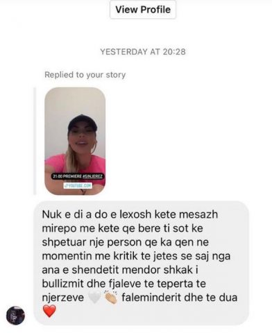 Ne keto 5 dite pas publikimit te episodit dhe këngës se pare te projektit #Thuaje jam munduar te lexoj miliona mesazhet qe kam marr nga ju… JENI FRYMEZIMI IM.