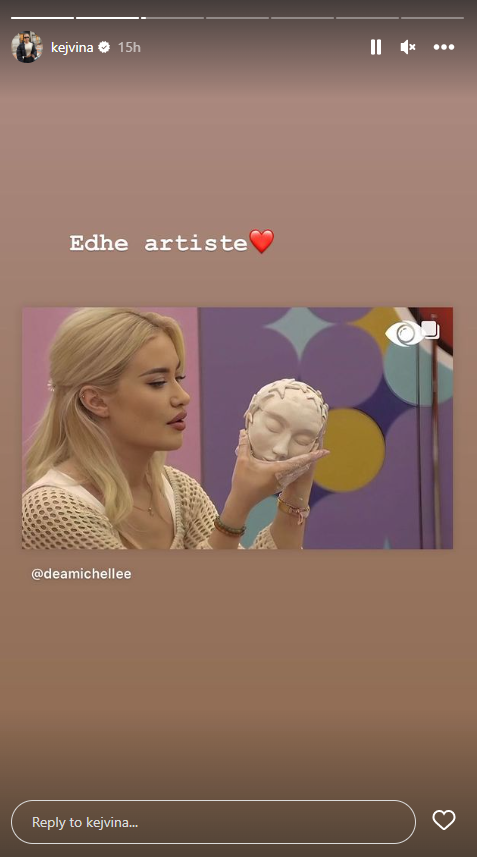 “Ke tre muaj aty brenda dhe e ke menaxhuar gjithçka shumë mirë me qetësinë tënde. Në fund të ditës në kuadër të lojës ke bërë gjithçka. Vazhdo kështu. O të njoh unë që kemi ndarë shtratin se sa cute dhe vajzë me botë je o s’të njeh kush!”– shkruan Kejvina në Instagram./Arbresh.info/