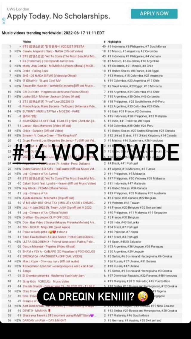 Mirëpo, së fundmi ka ardhur një reagim nga Tayna dhe Mozzik, të cilët kanë publikuar këngët që janë “trending” në të gjithë botën, ku bashkëpunimi i tyre renditet në vendin e 14-të.
