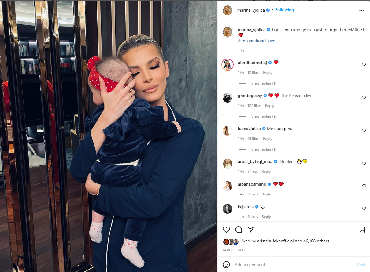 Marina ishte ajo e cila së fundi ka ndarë një imazh të ëmbël, teksa shihet duke e mbajtur në krah të bijën.