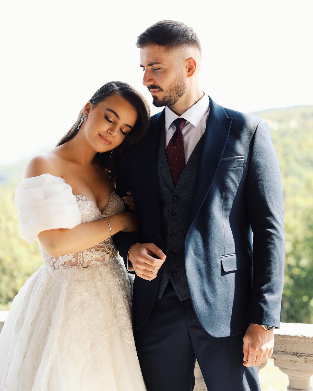 Bukuroshja në disa fotografi të publikuara në rrjetet sociale, duket mahnitëse me vellon e bardhë përkrah personit të zemrës.