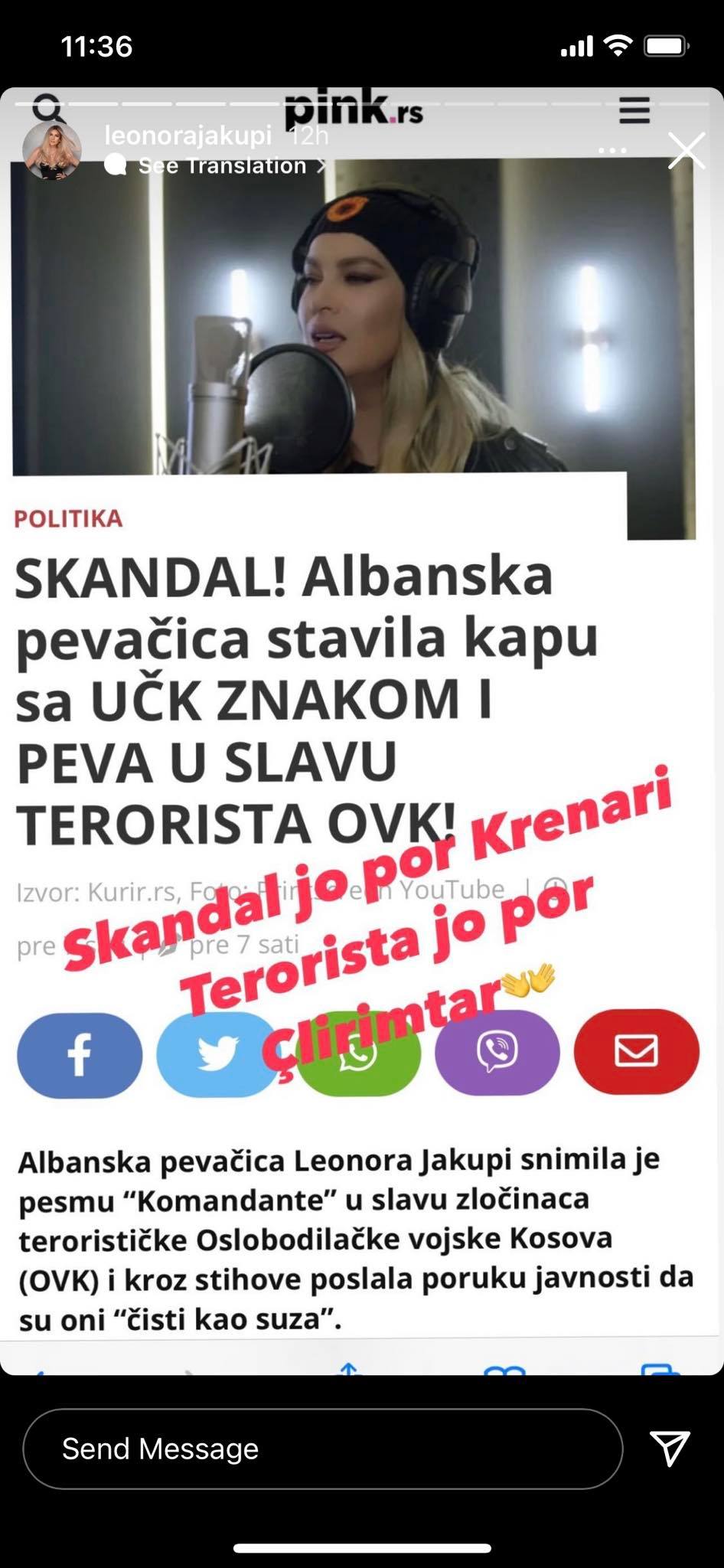 “Skandal: Këngëtarja shqiptare vendos një kapelë me shenjën UÇK dhe këndon për nder të terroristëve”.