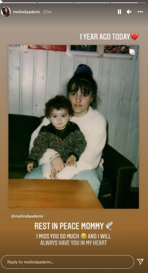 “Një vit më parë. Pusho në paqe nënë. Më mungon shumë dhe gjithmonë do të të kem në zemër”, thuhet në storjen e Melindës./arbresh.info/