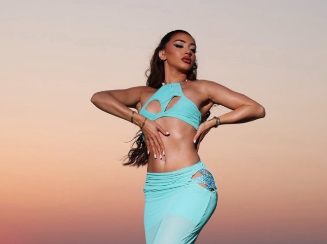 Përmes një postimi në Instagram, bukuroshja ka publikuar edhe disa pamje nga plazhi, ku shfaqet me një fustan ngjyrë blu, e që në pah i thekëson linjat trupore./Arbresh.info