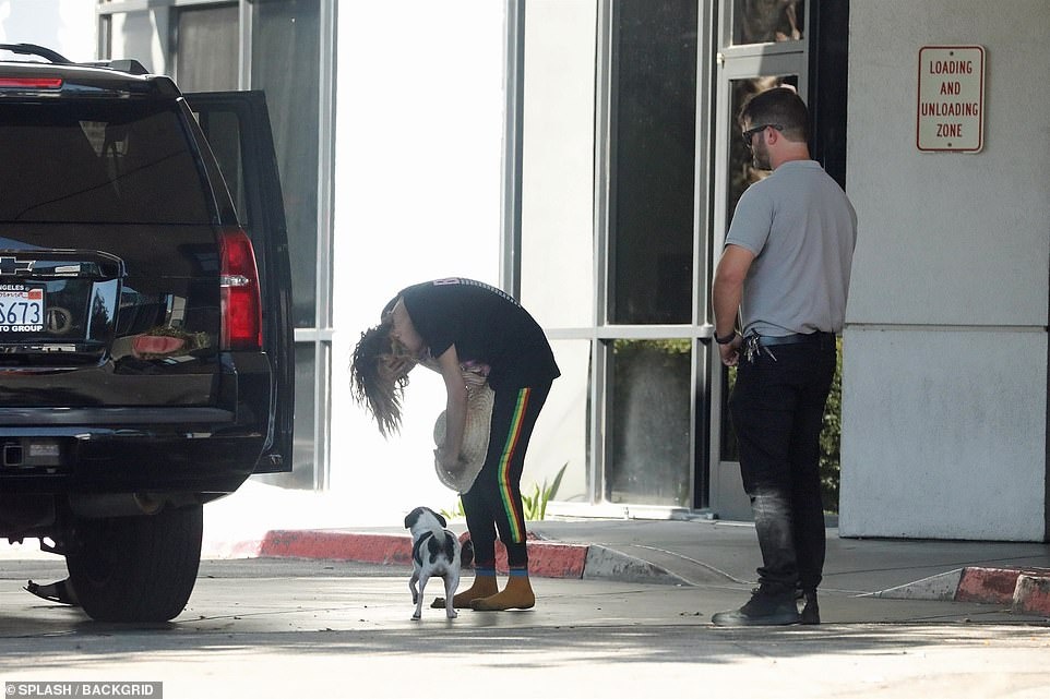 Pasi u raportua se u shfaq dy orë me vonesë për fluturimin e saj në aeroplanin privat të Jay-Z, modelja – e cila kishte veshur një bluzë me figurë të Britney Spears, vrapues të zi me shirita jeshilë, të verdhë dhe të kuq, çorape të verdha dhe pa këpucë – mori rrugën për në avioni me qenin e saj, Alfiie.