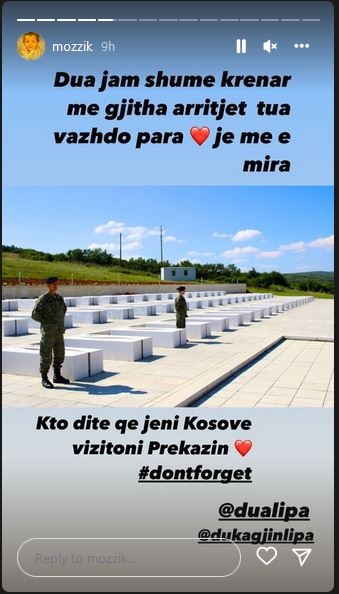 Mozzik përmes një InstaStoy i kërkoi asaj që ta vizitojë Prekazin.