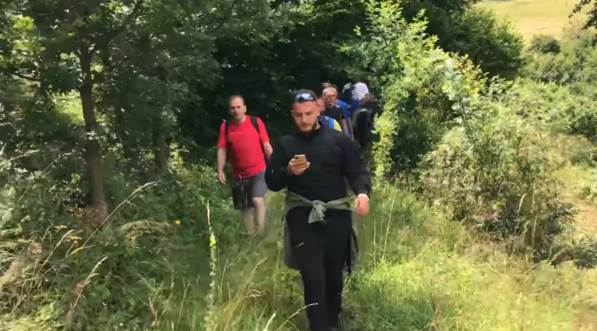 Në një postim në “Facebook”, artisti u shfaq bashkë me disa persona të tjerë duke ecur maleve teksa këndon Marshin e UÇK-së.