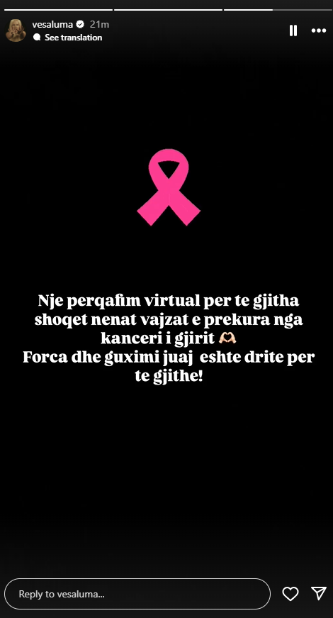 “Një përqafim virtual për të gjitha shoqet, nënat dhe vajzat e prekura nga kanceri i gjirit”, nis shkrimi.