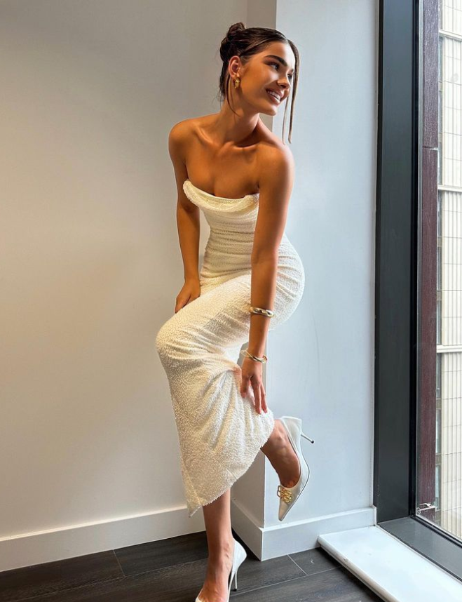 Modelja së fundmi ka publikuar foto sesionin e ri, ku shfaqet e veshur me një fustan të gjatë të bardh e me trup të tonifikuar.