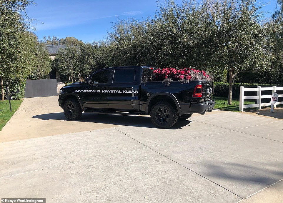 Kanye ka publikuar disa fotografi të dhuratës në fjalë në Instagram, ku edhe në mbishkrimin e fotografive ka shkruar të njëjtin varg që shkruhej në kamionetë.