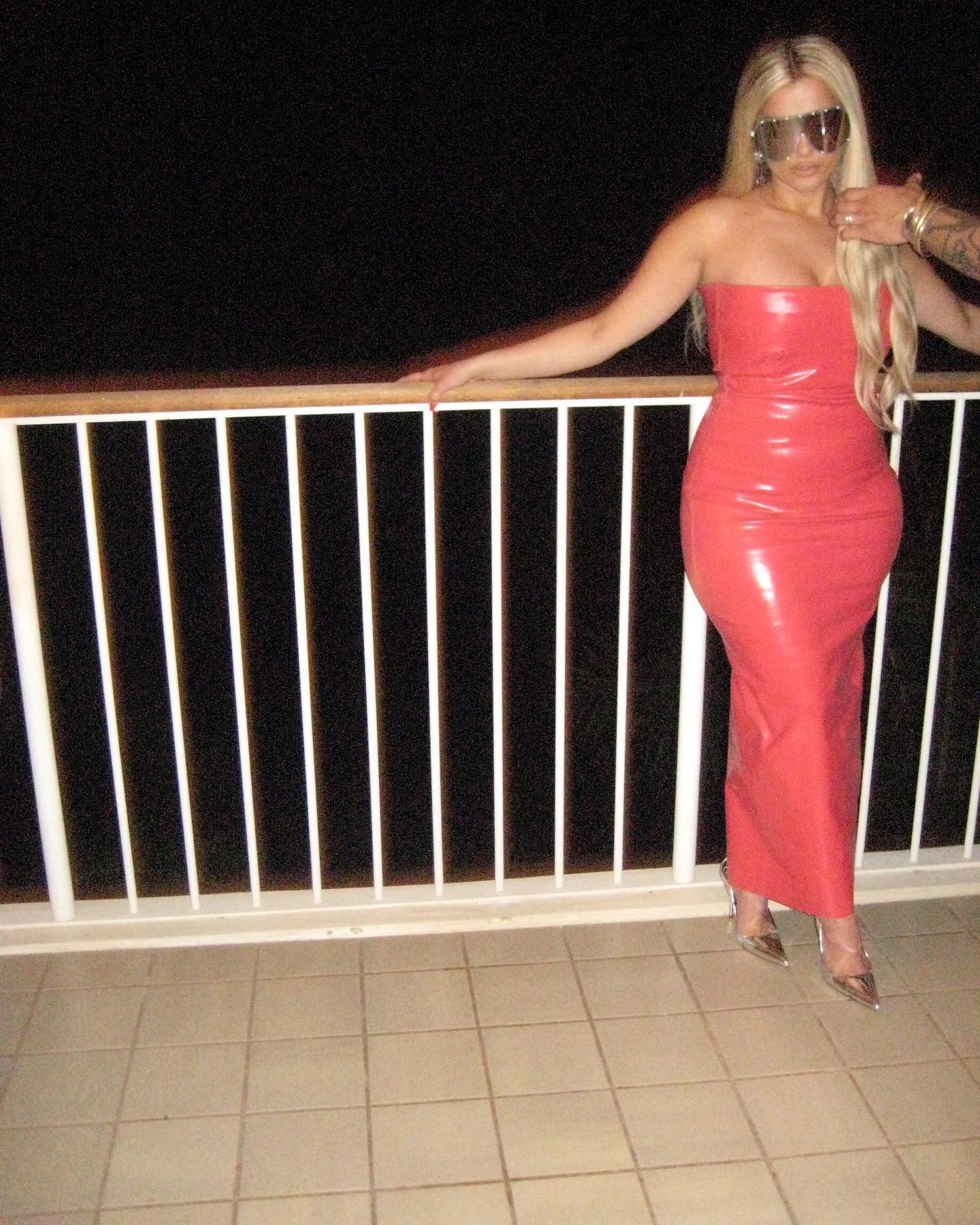 Në disa prej fotografive, 32-vjeçarha thekson format e saj të bujshme të trupit, ndërsa merr poza atraktive para kamerës.