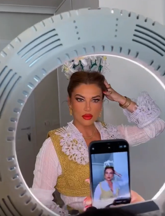 Së fundmi, Leonora mori vëmendje teksa u shfaq në veshje tradicionale shqiptare.