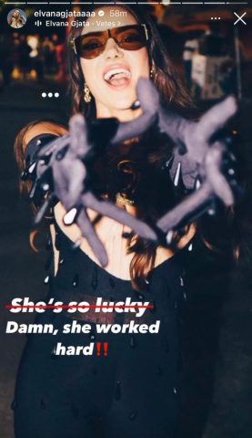 E si një artiste mjaft e arrirë tanimë, padyshim që pas gjithë sukseseve të saj ‘fshihet’ një punë dhe lodhje shumë e madhe dhe qëndrimi prej kaq shumë vitesh në listën e këngëtareve më të pëlqyera nuk mund te jetë thjesht fat. Teksa ka fshirë fjalët “Ajo është me fat’, Elvana ka shkuar “Ka punuar fort”.
