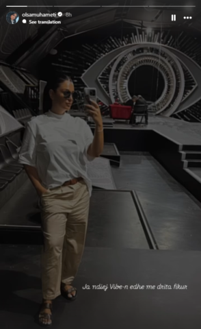 “Ja ndiej Vibe-in edhe me drita fikur”, shkroi Muhameti, derisa pozonte për foto në studion gjigante të formatit.