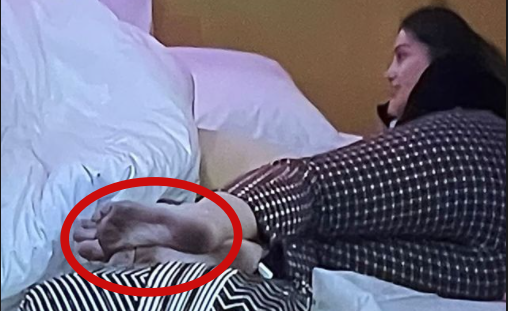 Teksa ajo ishte e shtrirë pranë Einxhelit që po qëndron në suitë, ekrani ka kapur këmbët e Arjolës të ndotura.