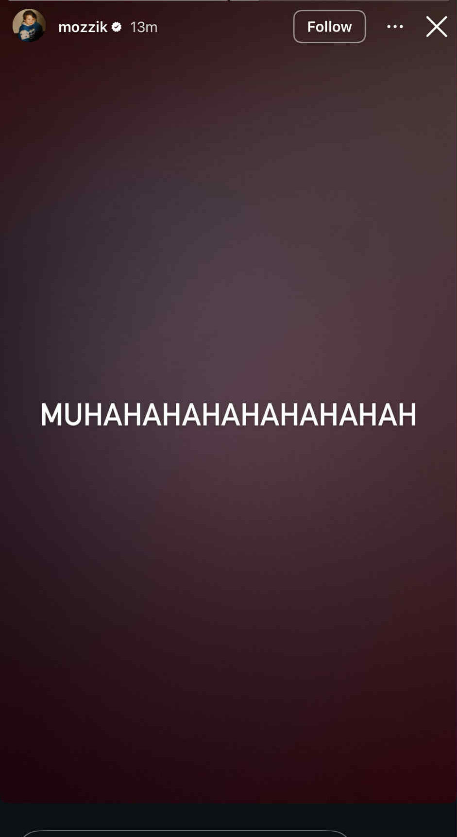 Mozzik zgjodhi të mos japë as shpjegime e as kundërshtime të drejtpërdrejta për lajmin që bëri bujë të madhe në media dhe rrjete sociale. Përkundrazi, ai reagoi përmes një Instastory, ku publikoi vetëm një shkrim të shkurtër me ironi: