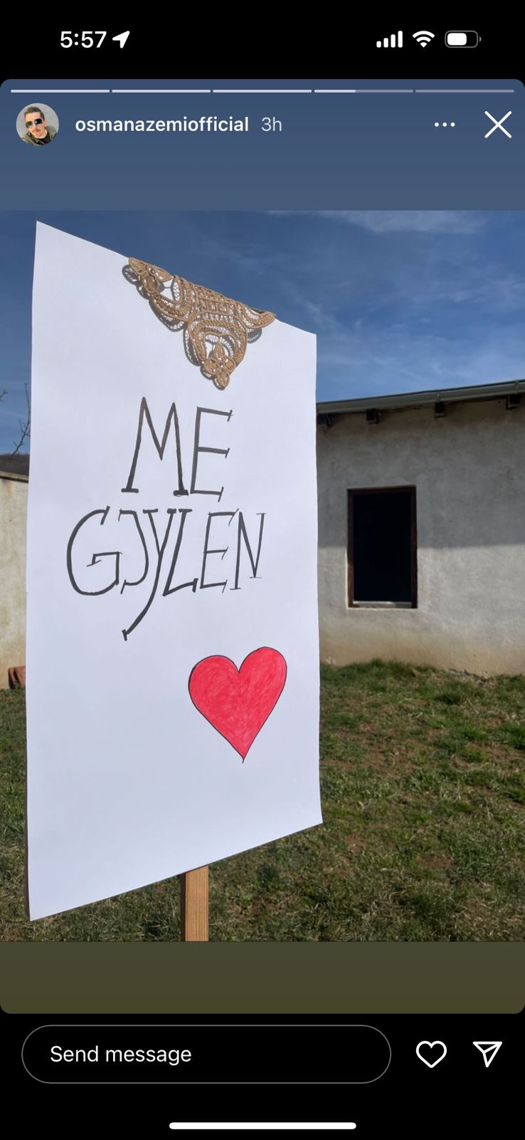Përmes një fotografie, ai ka shpërndarë një foto ku shkruhet “Me Gjylen”
