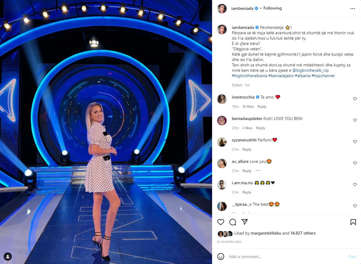 Tani shoh sa shumë doni,sa shumë më mbështesni dhe kuptoj sa mirë kam bërë që u bëra pjesë e Big Brother Vip”. /arbresh.info/