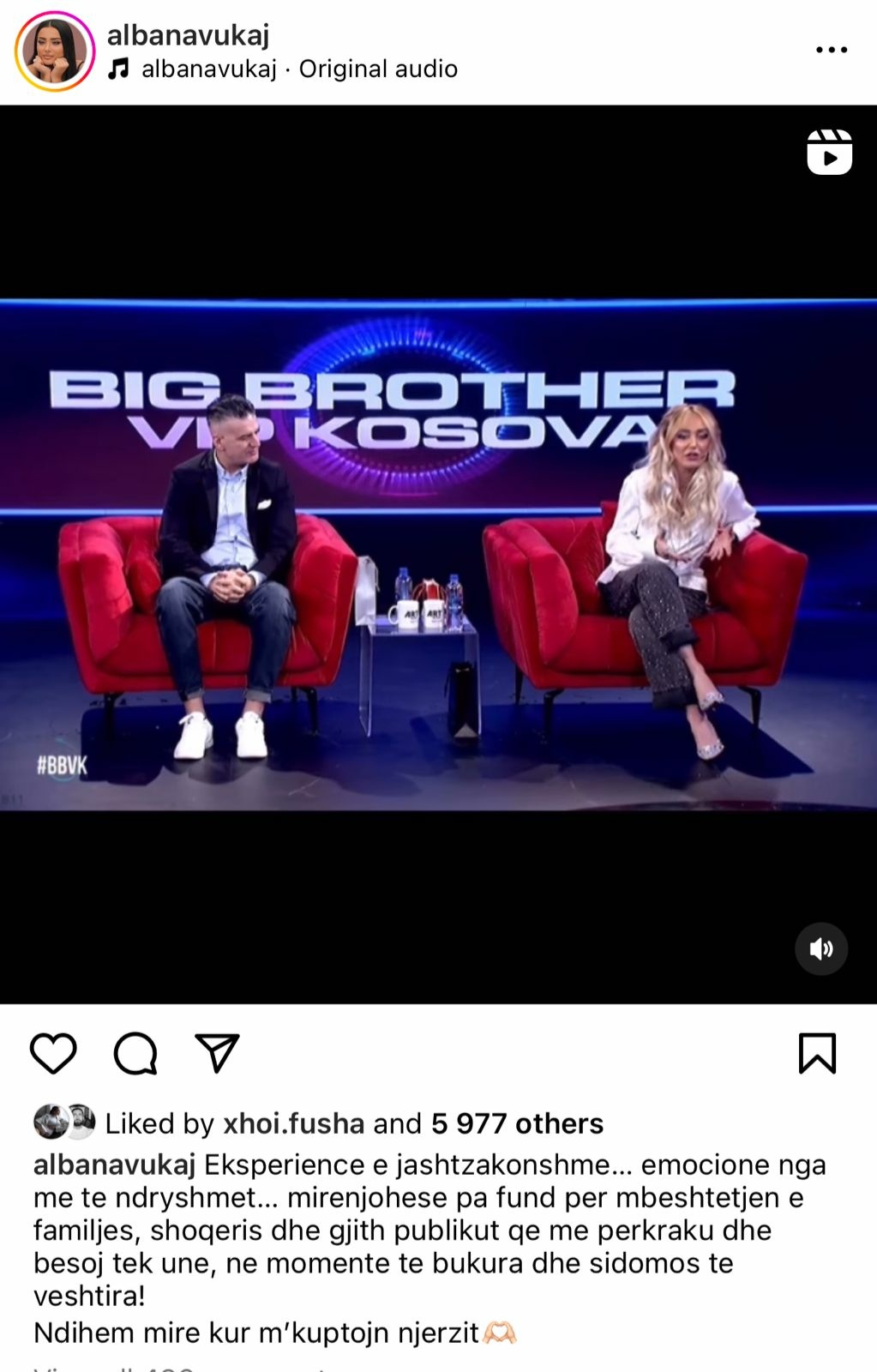 Pas daljes ajo ka reaguar në Instagram, dhe eksperiencën në BBVK, e quajti të jashtëzakonshme.