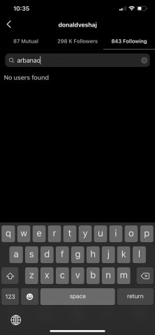 Donaldi nuk e ndjekë më Arbanën në instagram, ndërsa kjo e fundit vazhdon ta ndjekë Donaldin.