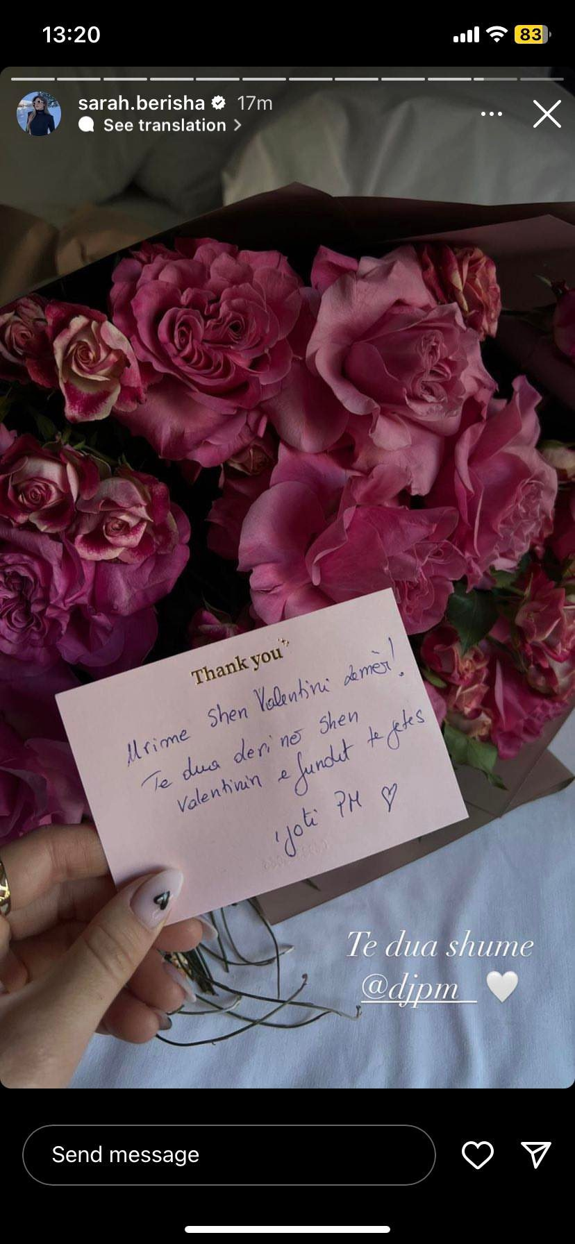 Një buqet me lule dhe një shkrim shumë i ndjerë nga ana e tij, ka emocionuar Saren.